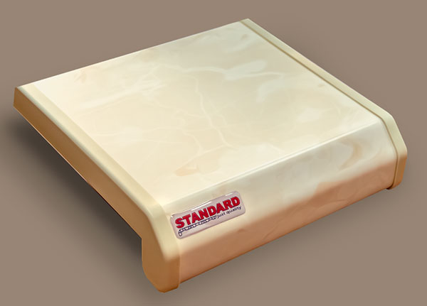 Покрытие — инновационная разработка Elesgo(Германия) специально для подоконника STANDARD. Эта износостойкая пленка создана с учетом всех требований украинских потребителей. Для основы подоконника Стандарт используется только первичное экологически безопасное сырье. Запатентованная оригинальная конструкция ребр жесткости обеспечивает подоконнику необходимую прочность.